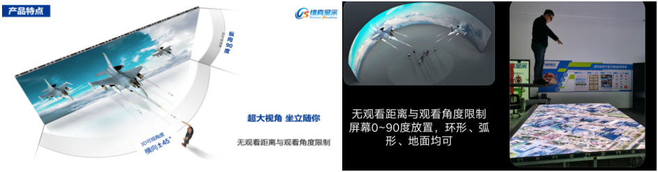 4、最大視角可達120度,環形、弧形、地面均可,且無觀看距離限制。